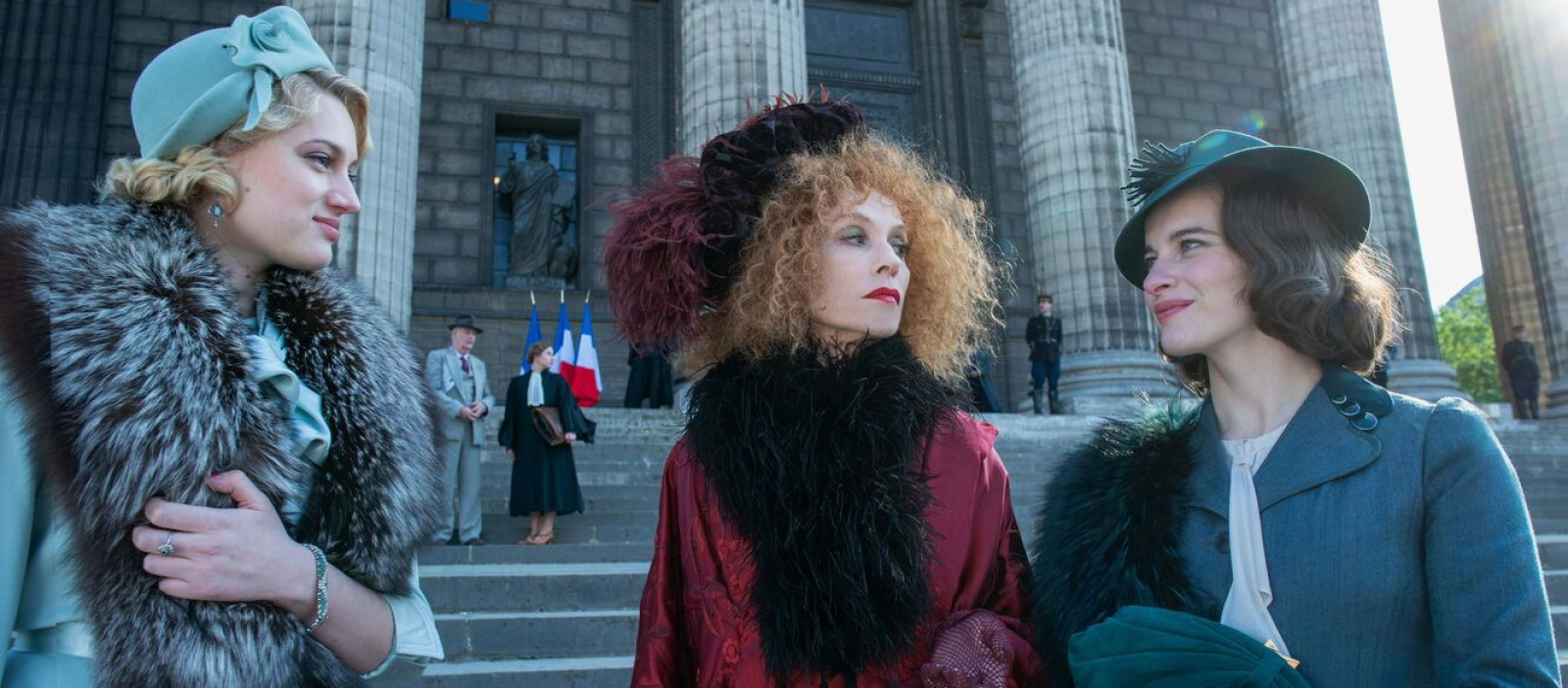 Photo caption: Nadia Tereszkiewicz, Isabelle Huppert and Rebecca Marder in THE CRIME IS MINE. Courtesy of Music Box Films.
