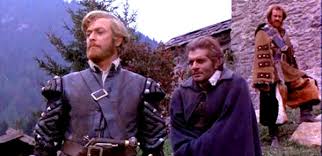The historical epic The Last Valley is set in 1643 when a band of mercenaries led by The Captain (Michael Caine) is foraging. They happen upon a remote hamlet tucked deep in the Tyrolean Alps that, miraculously has not yet been ruined by warfare. The Captain has conscripted a wandering refugee, the teacher Vogel (Omar Sharif), for his value in an illiterate time. The Captain and Vogel broker a deal with village’s headman Gruber (Nigel Davenport) for the soldiers to spend the winter in the village, a respite from the combat, starvation and plague prevalent everywhere else.